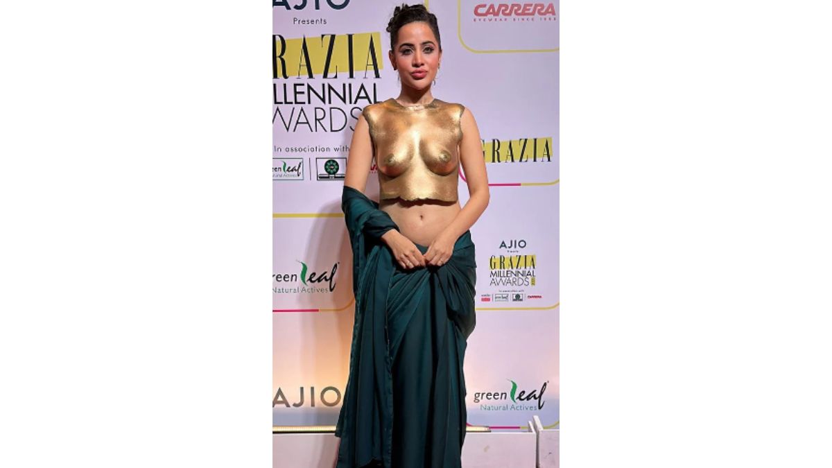 Uorfi Javed, known for her daring style, wore a half-draped saree and dazzling golden armor on her body to the Grazia Millennial Awards 2023. She attributed the inspiration to Cardi-B, admitting that the creation took months of rigorous crafting. Uorfi and DIY artist Shweta Mahadik poured their hearts and souls into curating and creating the stunning piece, making certain that every aspect was perfect. The fashionista's Instagram photo shows the creation of the spectacular piece.