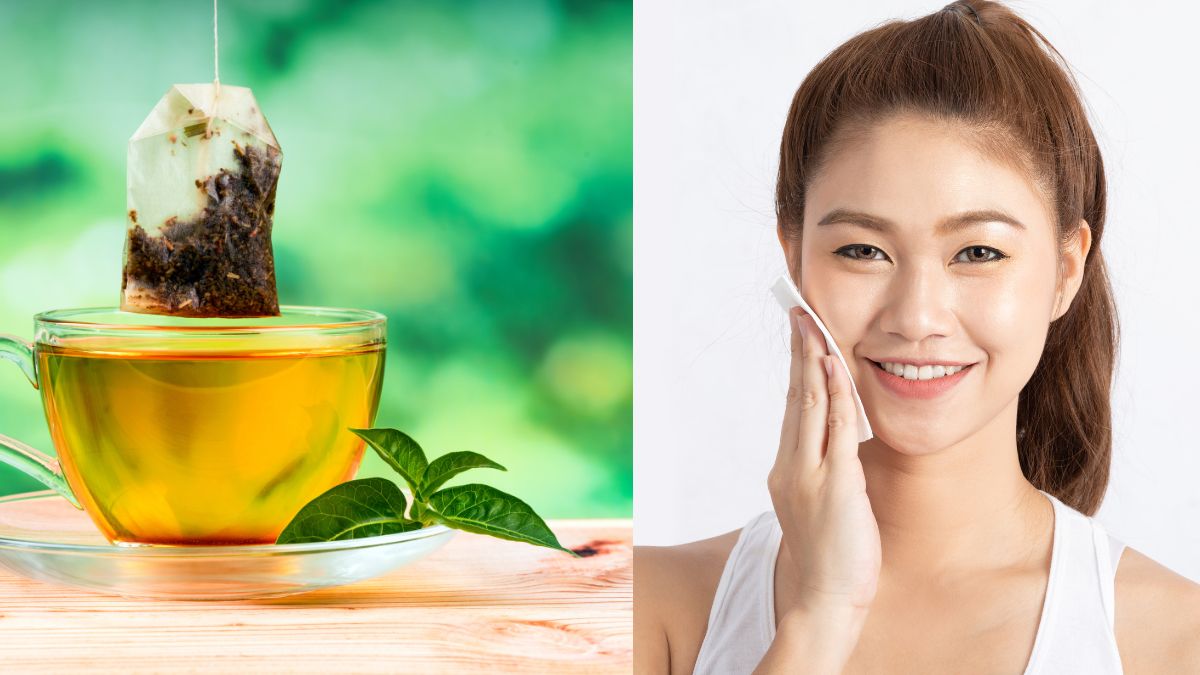 All you need to make the green tea toner is water, tea tree oil (optional), and 1 green tea bag or 1 teaspoon of green tea leaves.