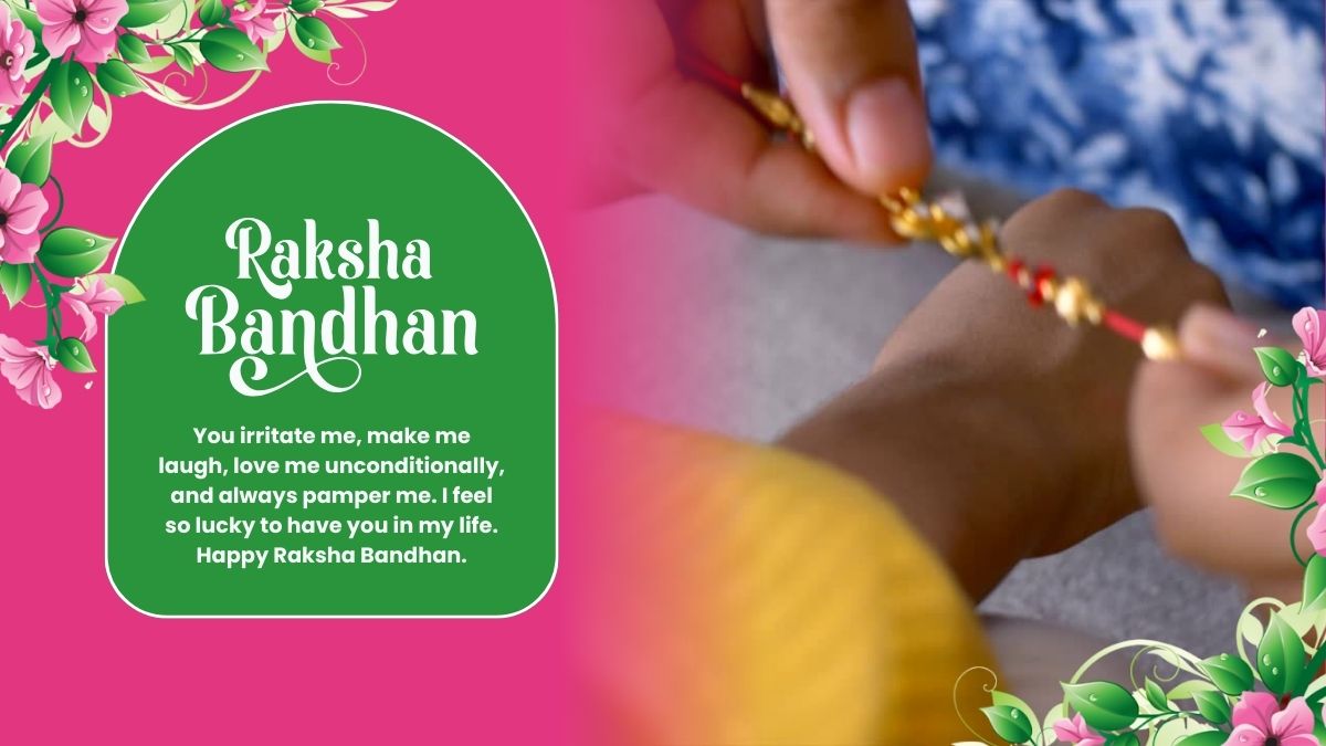 - You irritate me, make me laugh, love me unconditionally, and always pamper me. I feel so lucky to have you in my life. Thank you for being in my life. Happy Raksha Bandhan.