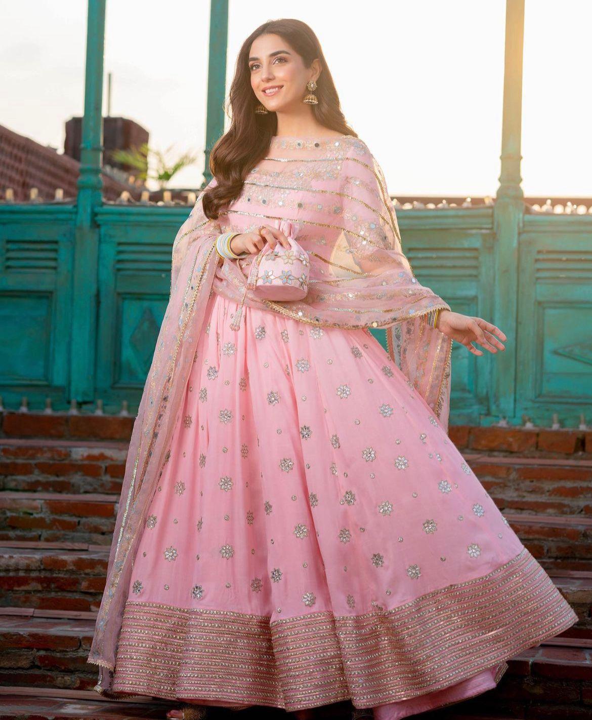 Maya Ali, a Pakistani actress and model who is currently seen in 'Ranjish Hi Sahi' on Zindagi DTH service, has captured many hearts with her stunning design choices. Maya Ali is dressed in a pink anarkali that exudes beauty. Don't you think this anarkali is a must-have for the upcoming wedding season? She chose pink cheeks and a natural look for her cosmetics. Did you fall in love with her style as well?