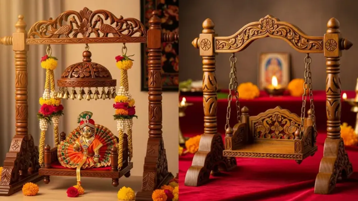 The SATYAM KRAFT Foldable Wooden Jhula is perfect for celebrating Janmashtami at home. Made from sturdy pinewood, this swing is designed to hold small idols like Laddu Gopal securely without wobbling. Includes assembly screws and allen key for quick, easy set up. Compact, foldable design looks great in small mandirs or pooja corners, and provides a festive touch to your space. Great to use for not only Janmashtami, but other religious occasions as well, this jhula adds charm and tradition to your pooja decorations and is a product that can be reused year after year.