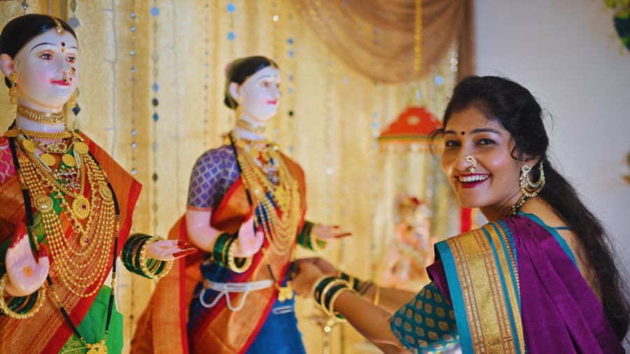 Married women in Maharashtra celebrate Goddess Parvati with 3-day festivities, decorations, and warm hospitality, honouring divine femininity. (Image Source: Canva)