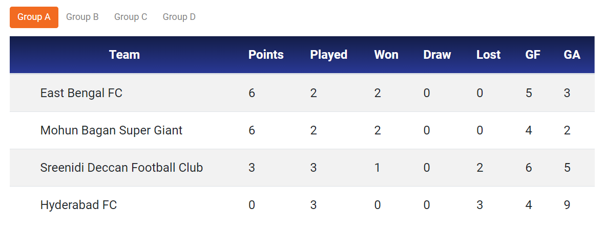Mohun Bagan vs East Bengal Live Score: Points Table
