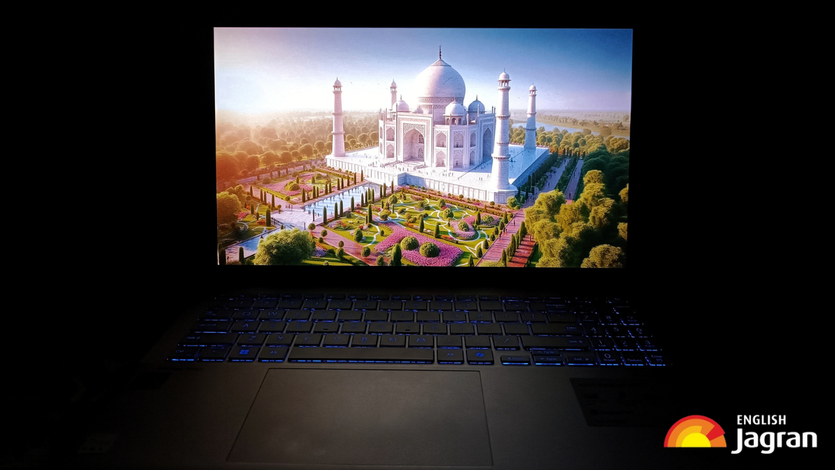 You get a wide range of ports (I only craved a full-size SD card slot here) on the side and thermal vents on the rear. On the inside, the hinge can stretch up to 180 degrees with a single hand to let users rest their eyes on the ErgoSense single-zone RGB keyboard and ErgoSense touchpad. Moving the head up exposes an OLED display with minimum bezels, the perfect recipe for visual ecstasy.