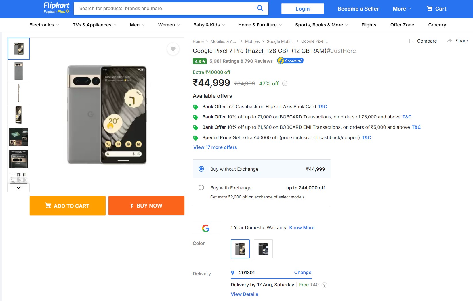 Pixel 7 price during Flipkart Flagship Sale 2024.