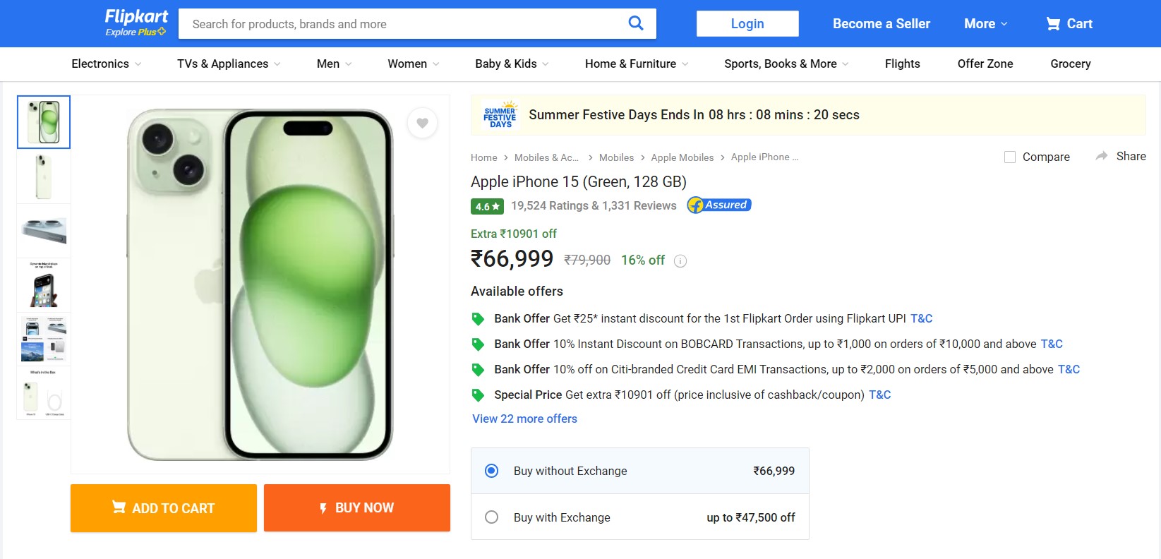 Flipkart Mobile Offers 2024: Apple iPhone 15 Price