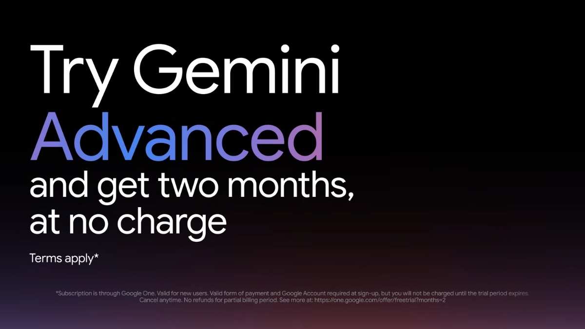 Select users can try out Gemini Advanced for free via a Google One subscription, subject to Google's terms. (Image:Google)