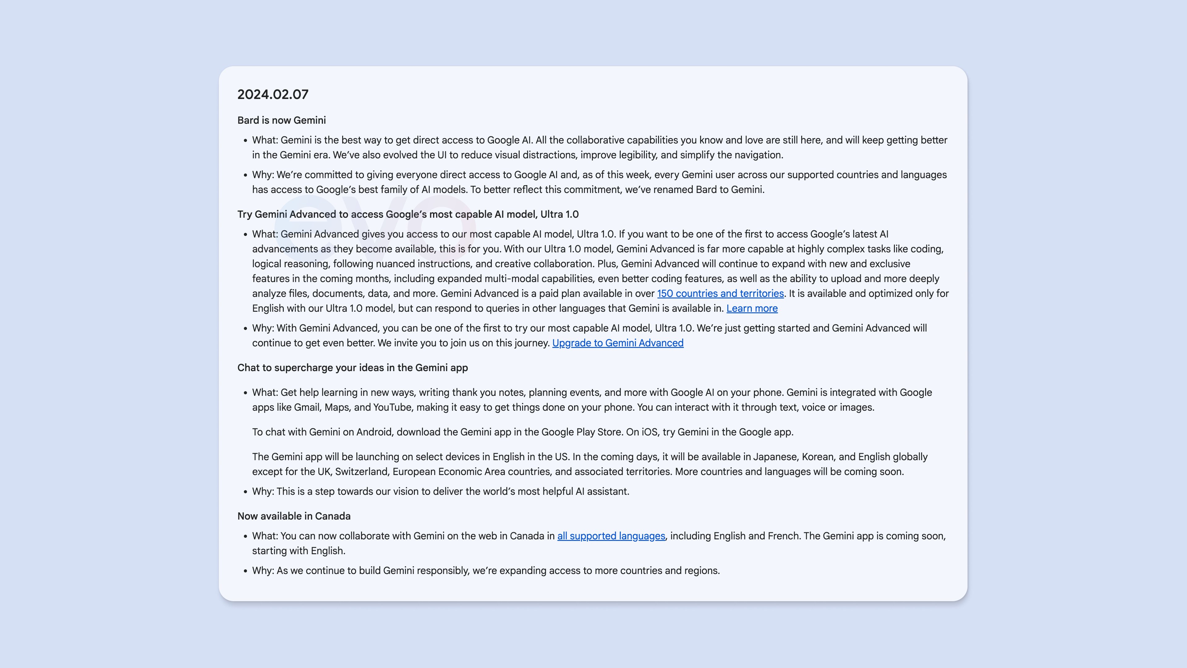 An early changelog (dated February 7) spotted by Dylan Roussel claims that the change may be officially announced a few days from now. "Bard is now Gemini," the changelog posted on X (formerly Twitter) stated. But Google noted that: "all the collaborative capabilities you know and love are still here, and will keep getting better in the Gemini era".