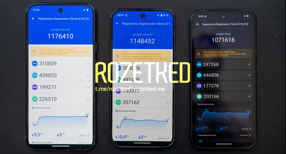Google Pixel 9 Pro XL, Pixel 9 Pro and Pixel 9 leaked benchmark scores. (Image:Rozetked)