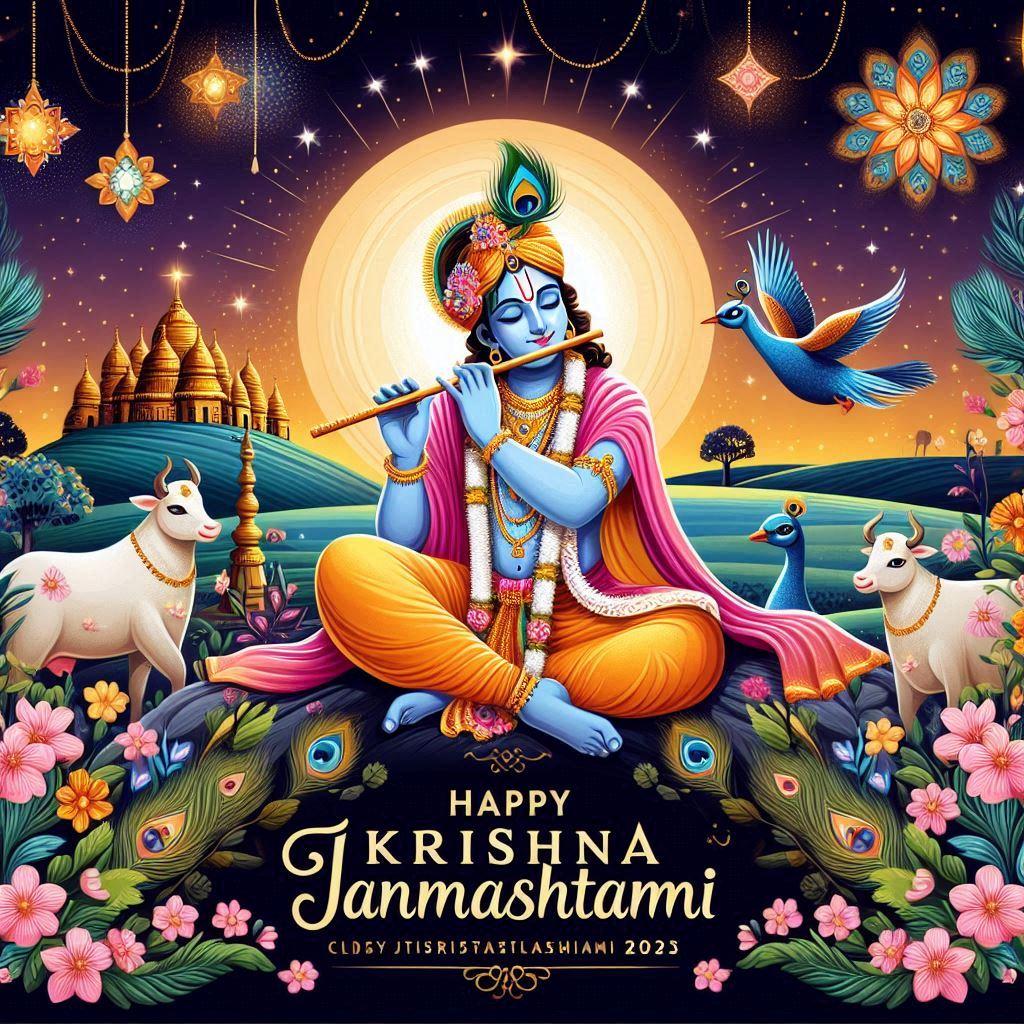"Happy Janmashtami! May Lord Krishna's wisdom and blessings guide you towards a path of righteousness, and may your life be filled with joy and success."
