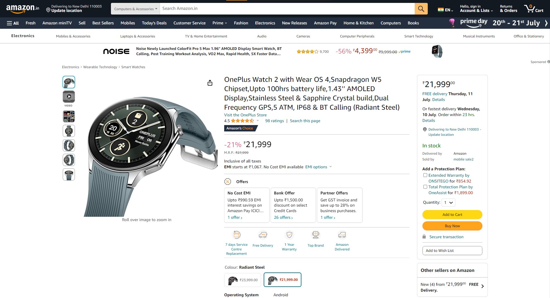 OnePlus Watch 2's Radiant Steel variant is available for Rs 21,999 on Amazon. However, the Black Steel colour costs Rs 24,999. But both models are listed for Rs 21,999 on Croma. Coming to offers, you can get up to 1,500 off via bank discount on IDFC FIRST Bank and Kotak Bank credit card EMI transactions.