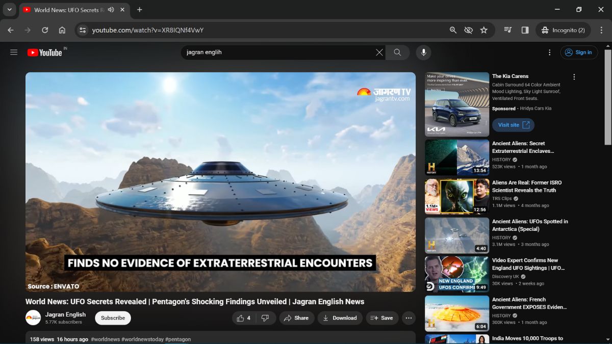 1. Visiting YouTube.com in Incognito mode.