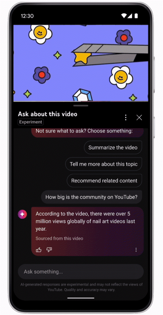 YouTube added that it will collect feedback from these limited tests to improve them in the future. Plus, it said that 'Topics' and 'Ask' "may not always get it right" due to its experimental character.