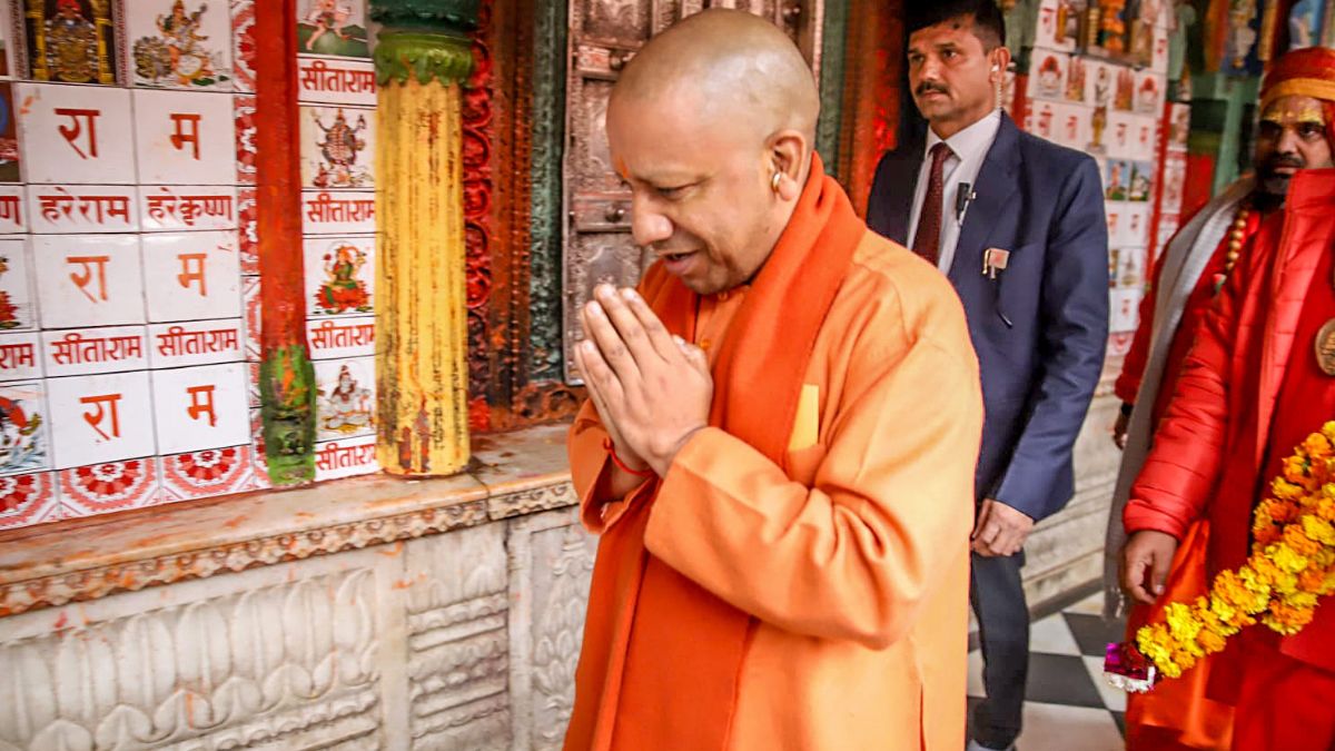 UP CM Yogi Adityanath offers prayers at Hanuman Garhi. (Image: ANI)