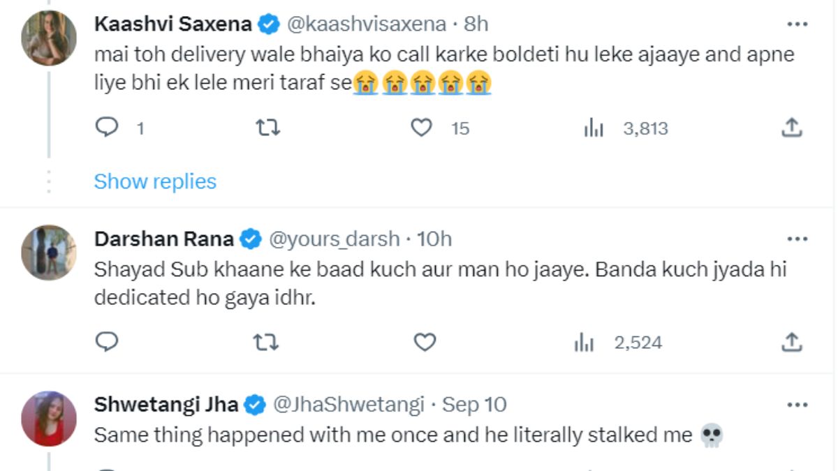 An X user reacted to the hilarious conversation and said, "'Aise delivery Wale sabko mile (May everyone get such a delivery guy)''. A fourth added, ''Order at 2 AM midnight... you too might get such an inquiry.'' Another said, ''haha.. Thats why Zomato's share prices are increasing this much.''