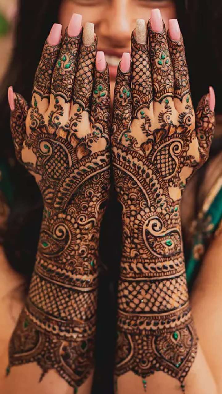 Try this trendy mehandi design featuring symmetry this festive season to create a perfect motif when both hands are joined.