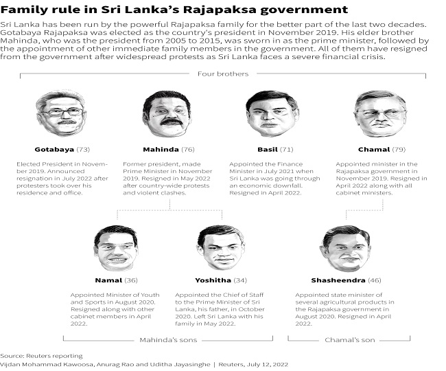 In May, Mahinda Rajapaksa had resigned as the country's Prime Minister amid protests. Two months later, his younger brother and President Gotabaya Rajapaksa fled the country, leaving no one from his family in a position of power.